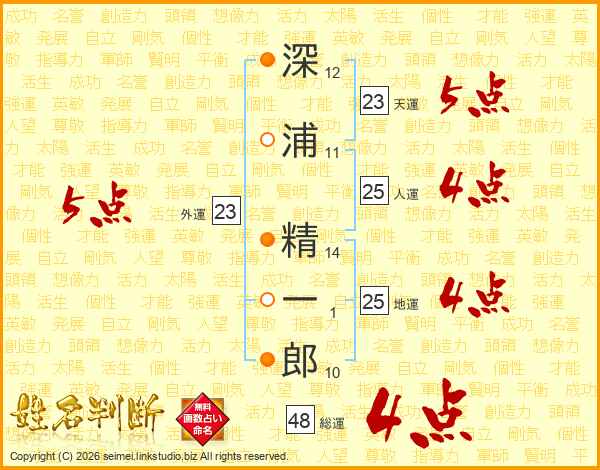 深浦精一郎さんの総運は48画の4点!