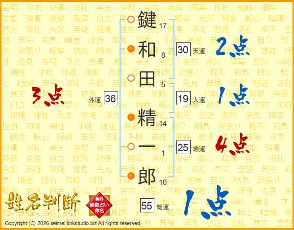 鍵和田精一郎さんの天運は30画の2点!