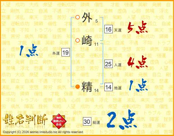 外崎精さんの天運は16画の5点!
