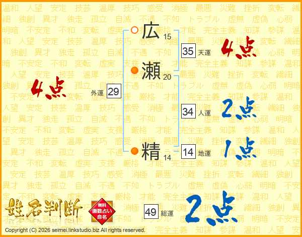 広瀬精さんの総運は49画の2点!