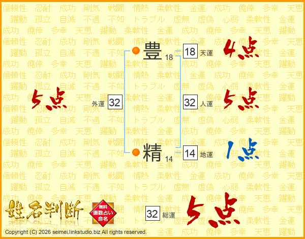 豊精さんの総運は32画の5点!
