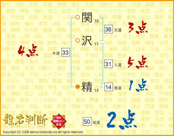 関沢精さんの人運は31画の5点!
