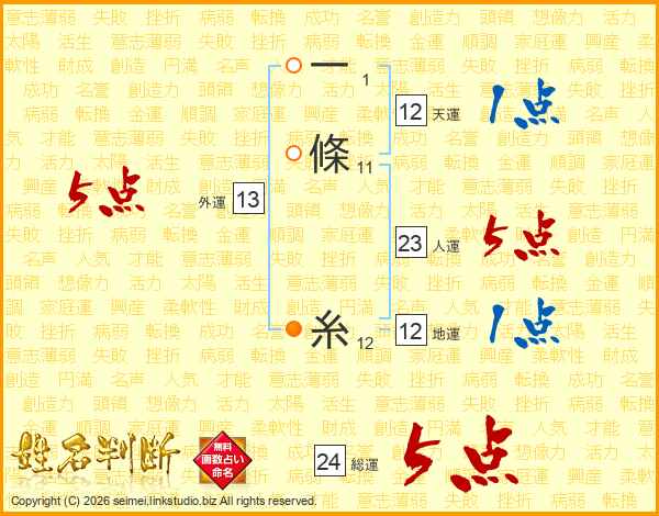 一條糸さんの総運は24画の5点!