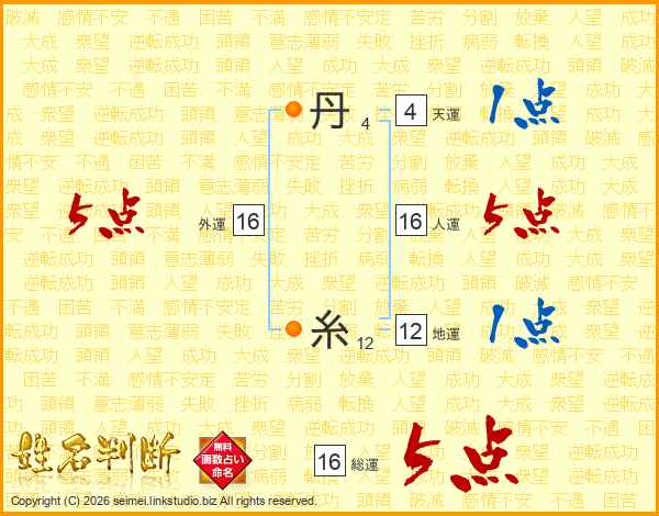 丹糸さんの総運は16画の5点