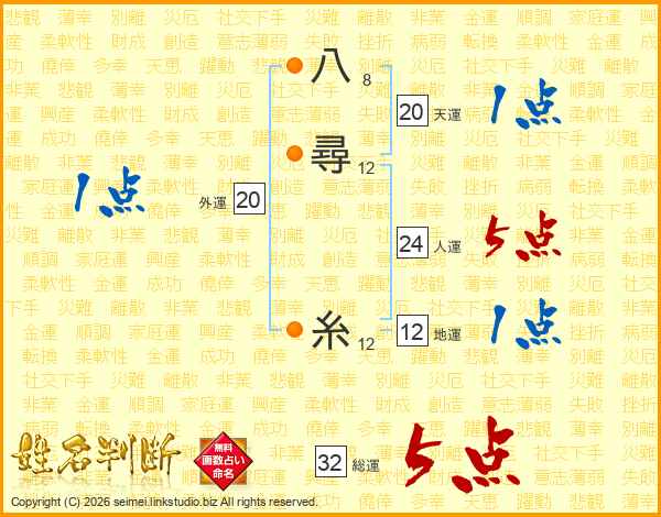 八尋糸さんの総運は32画の5点!