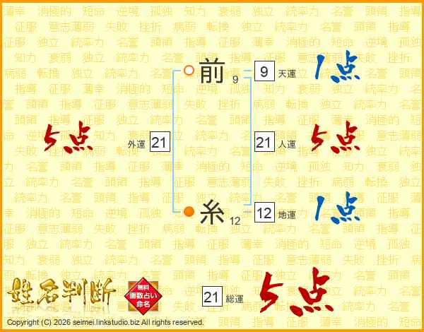 前糸さんの総運は21画の5点!