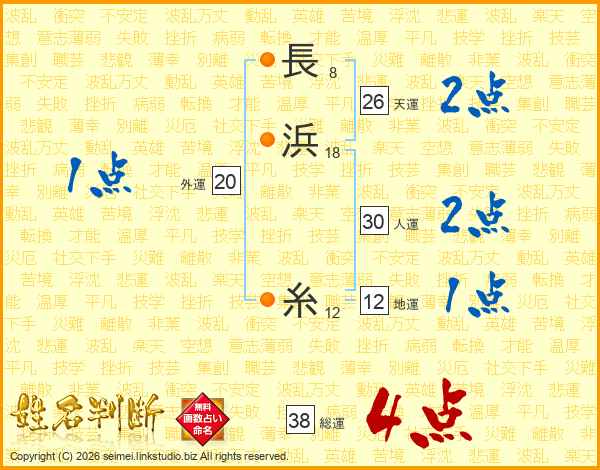 長(8画)浜(18画) 糸(12画)