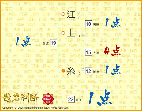 江上糸さんの総運は22画の1点!