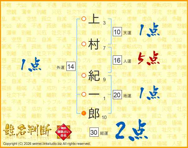上村紀一郎さんの総運は30画の2点!