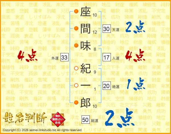 座間味紀一郎さんの天運は30画の2点!