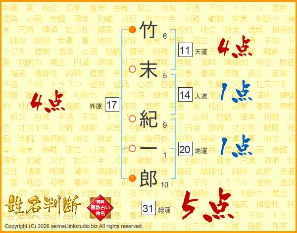 竹末紀一郎さんの総運は31画の5点!