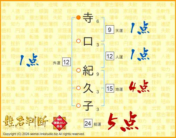 寺口紀久子さんの総運は24画の5点!