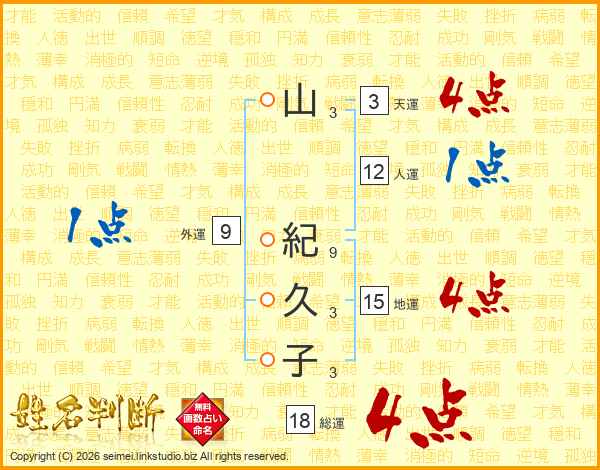 山紀久子さんの総運は18画の4点!