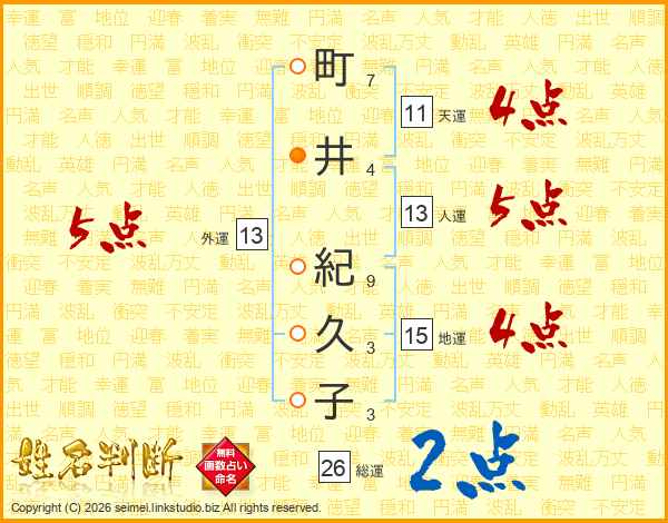 町井紀久子さんの総運は26画の2点!
