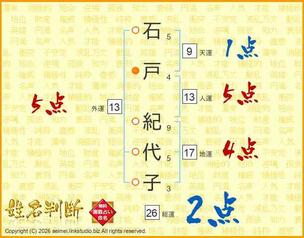 石戸紀代子さんの総運は26画の2点!