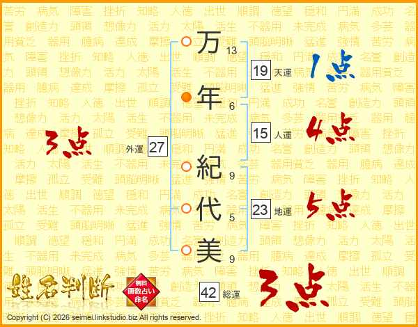 万年紀代美さんの総運は42画の3点!