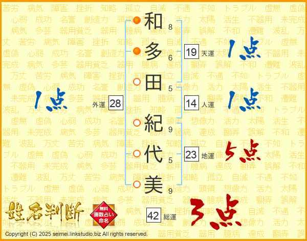 和(8画)多(6画)田(5画) 紀(9画)代(5画)美(9画)