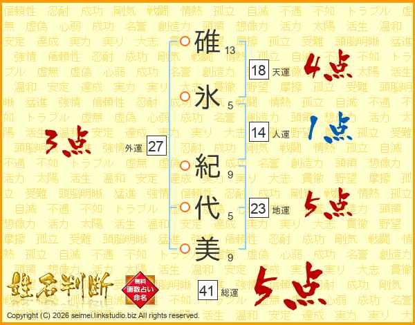 碓氷紀代美さんの総運は41画の5点!