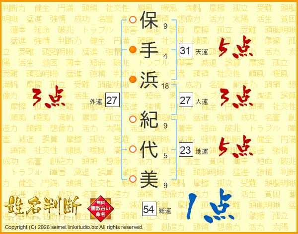 保手浜紀代美さんの人運は27画の3点!