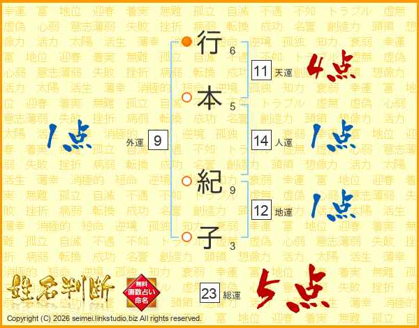 行本紀子さんの総運は23画の5点!
