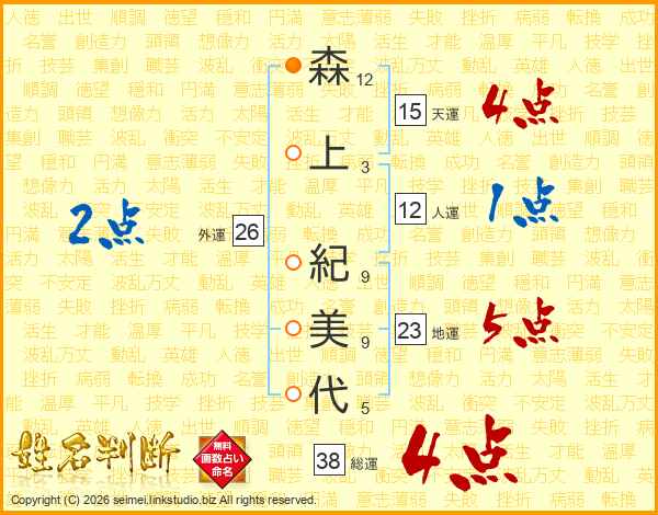森上紀美代さんの総運は38画の4点!