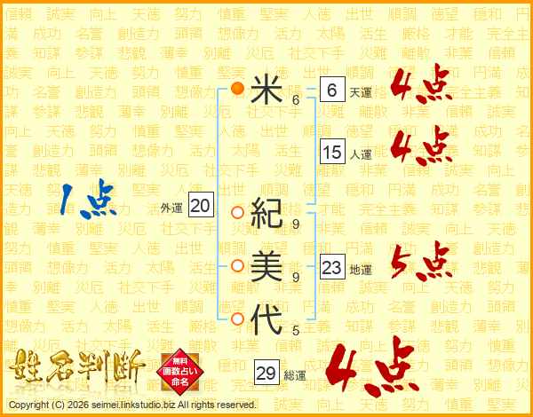 米紀美代さんの総運は29画の4点!
