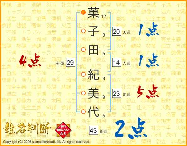 菓子田紀美代さんの総運は43画の2点!