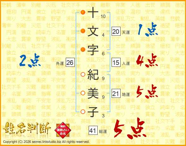 十文字紀美子さんの総運は41画の5点!