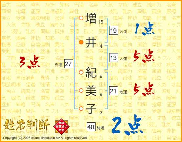 増井紀美子さんの天運は19画の1点!