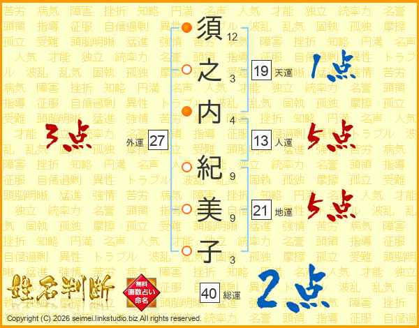 須之内紀美子さんの人運は13画の5点!