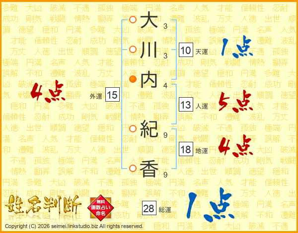 大川内紀香さんの外運は15画の4点!