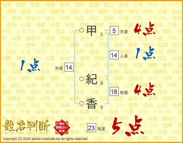 甲紀香さんの総運は23画の5点!