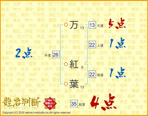 万紅葉さんの総運は35画の4点!