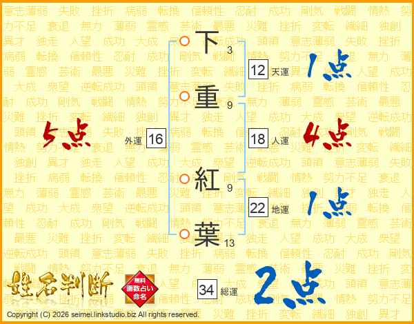 下重紅葉さんの地運は22画の1点!