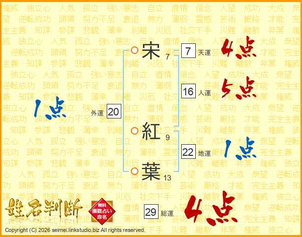 宋紅葉さんの総運は29画の4点!
