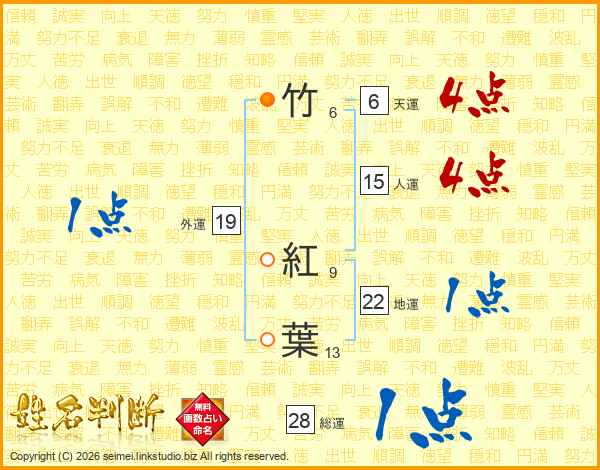 竹紅葉さんの総運は28画の1点!