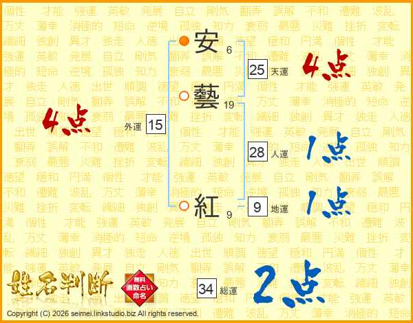 安藝紅さんの総運は34画の2点!