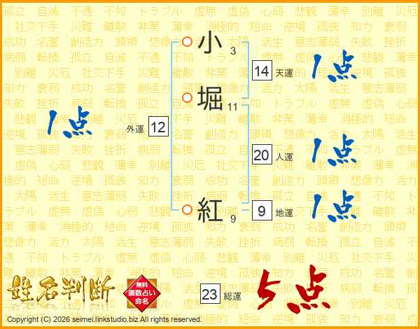 小堀紅さんの総運は23画の5点!