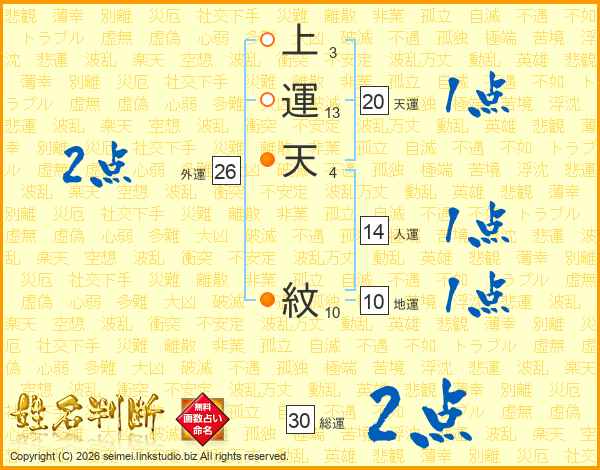 上運天紋さんの外運は26画の2点!