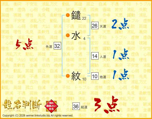 鑓水紋さんの天運は26画の2点!