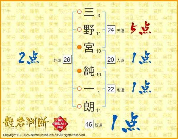 三野宮純一朗さんの総運は46画の1点!