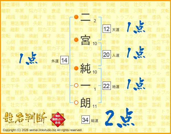 二宮純一朗さんの人運は20画の1点!