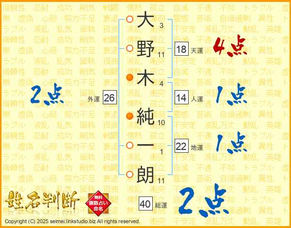大野木純一朗さんの総運は40画の2点!