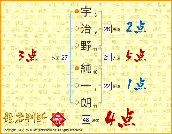 宇治野純一朗さんの天運は26画の2点!