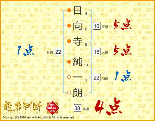 日向寺純一朗さんの総運は38画の4点!