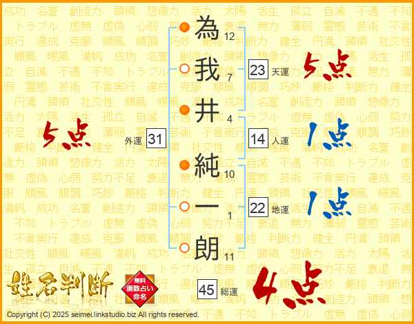 為我井純一朗さんの総運は45画の4点!