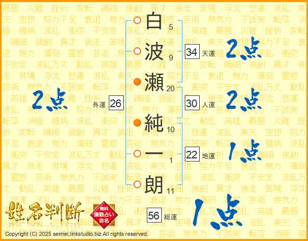 白(5画)波(9画)瀬(20画) 純(10画)一(1画)朗(11画)