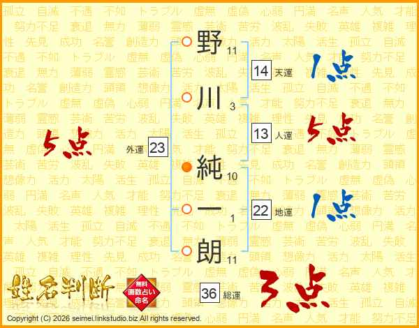 野川純一朗さんの天運は14画の1点!