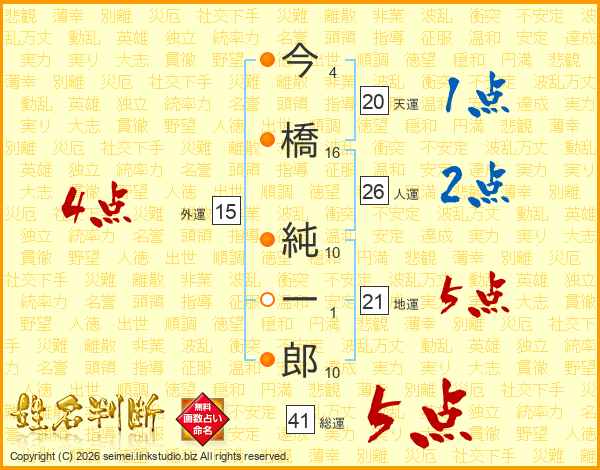 今橋純一郎さんの総運は41画の5点!