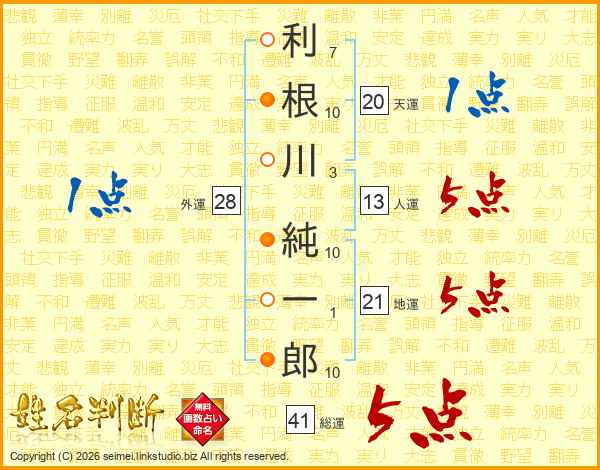 利根川純一郎さんの総運は41画の5点!